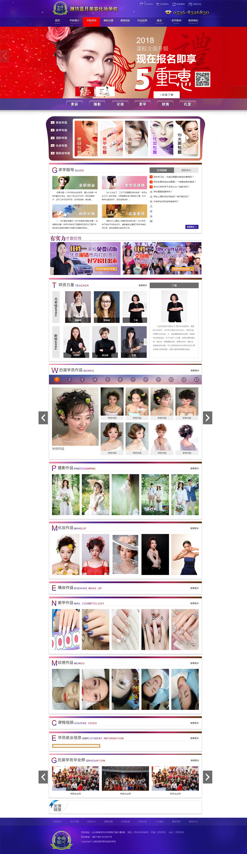 潍坊蓝月摄影化妆美容专业学校是潍坊市劳动和社会保障局指定的职业技能培训机构。学校采取专家教授与企业联手办学模式,是一所有8家大型专业直营店14个事业部支持,以摄影、化妆、美容、室内设计、平面设计等专业技能及工商企业管理专业为主的多学科全日制学校。
